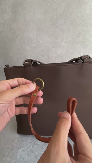 傘、ペットボトル、レジ袋、上着──バッグの中に入れるにはちょっとかさばるものを、バッグの外に“ひと掛け”するだけで、手ぶらに。